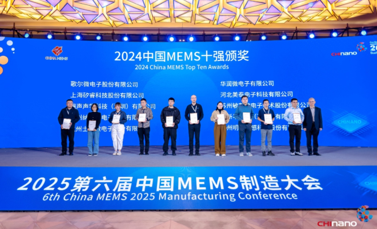 近日,2025第六届中国 MEMS 制造大会公布了“2024 年中国MEMS 十强企业”名单,歌尔微以榜首成绩再度入选。